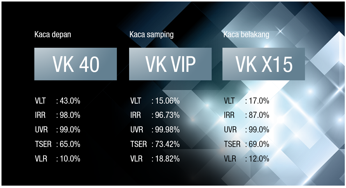 Diamond Plus Series memberikan Anda rangkaian kaca film V-KOOL terbaik yang bisa Anda dapatkan. Tidak ada kompromi untuk kualitas.